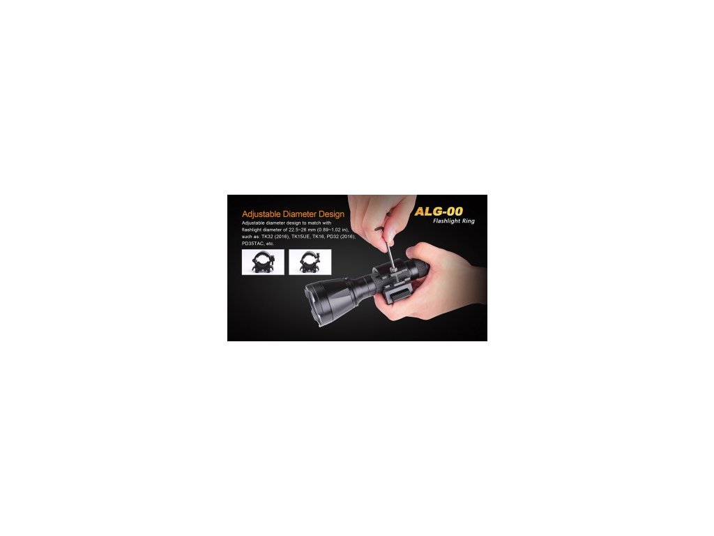 Rychloupínací kovová montáž svítilny na normalizovanou zbraňovou lištu (Weaver / Picatinny). Vhodné pro svítilny s průměrem těla 22,5 - 26,0 mm. Vhodná například pro svítilny Fenix PD32, Fenix PD35, Fenix UC35, Fenix TK09, Fenix TK15, Fenix TK16, Fenix TK20R, Fenix TK32.Parametry: