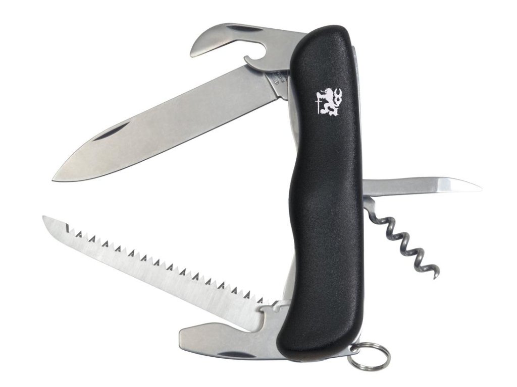 SKU: 115-NH-6/AKKapesní zavírací nůž PRAKTIK je všestranný pomocník. Jeho čepel je vyrobena z kvalitní nerezové oceli 420. Ergonomický tvar střenky zajišťuje velmi pohodlné držení. Nůž je vybaven pojistkou (linerlock), která zabraňuje nechtěnému pohybu čepele. Díky kroužku je možné si nůž zavěsit k opasku a zabránit tak ztrátě. Součástí střenky je čepel, otvírač na láhve/šroubovák/drážka na odizolování vodičů, otvírač na konzervy, pilka, vývrtka, bodec a kroužek.