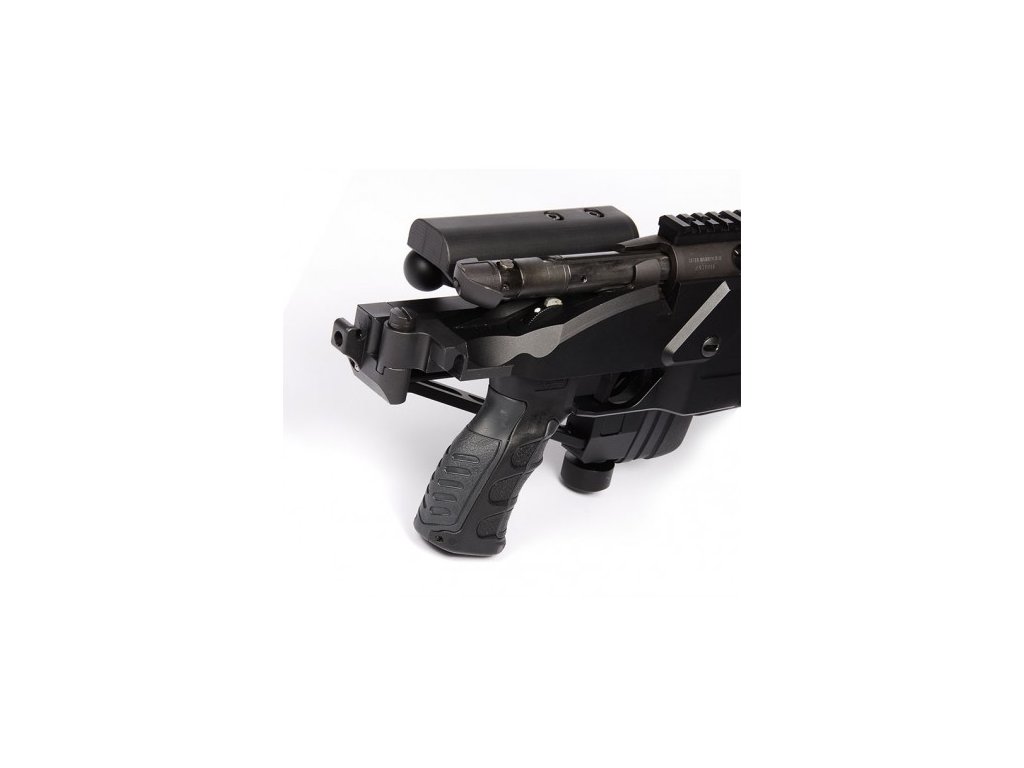 Pažbení - sklopná pažba, nastavitelná délka botky, nastavitelná výška lícnice, třetí nožka, ergonomická pistolová rukojeť