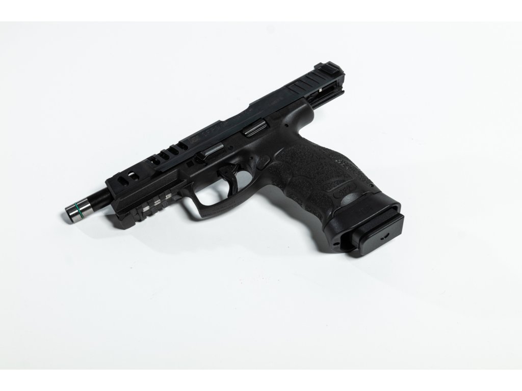 SFP9 MATCH OR - Alfa v kalibru 9 mm x 19 pro ambiciózní sportovní střelce se zálibou v přesnosti a dokonalosti. Ať už v podmínkách statické nebo dynamické střelby.Přizpůsobitelné nastavení velikosti rukojeti v kombinaci s dokonalou ergonomií pistole zajišťuje vyváženou a bezpečnou polohu ruky při disciplínách rychlého střelby. Naše nová lehká sportovní spoušť s tahem pouze 15 + 4N a přesnou hlavní HK o délce 5,5 palce snižuje možnost zbloudilé střely, čímž zvyšuje přesnost.