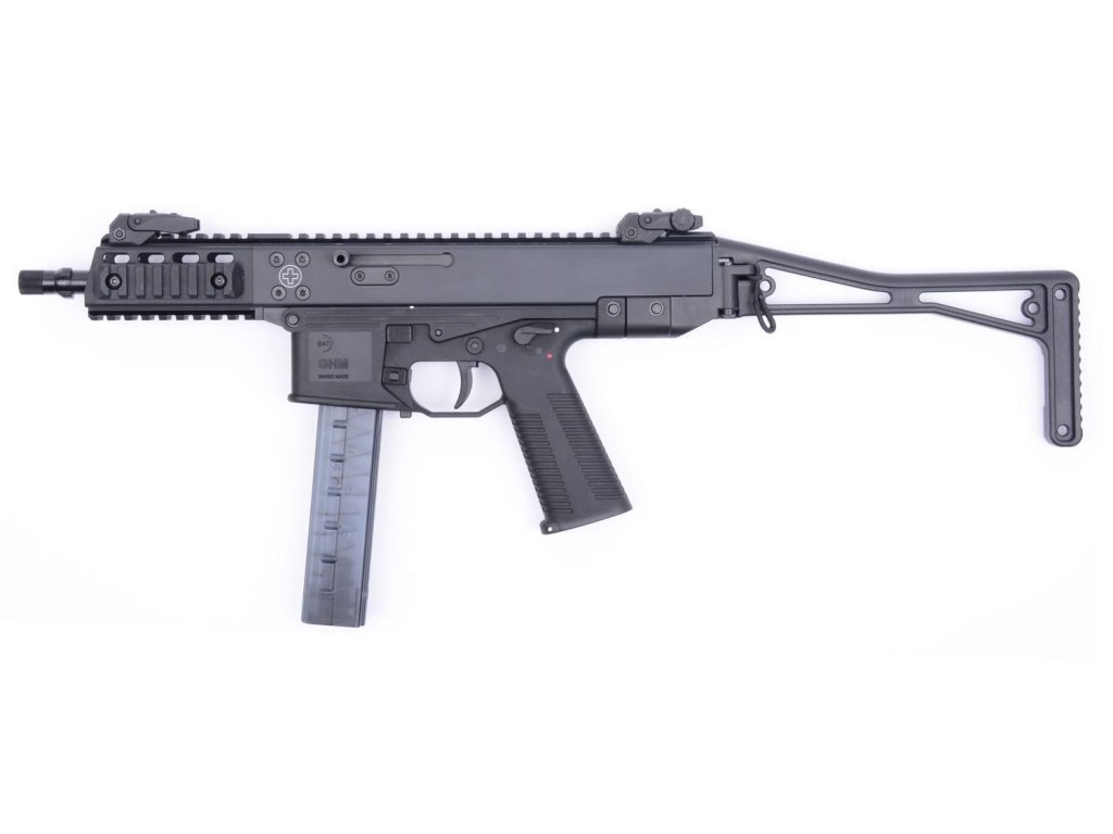 B&T GHM9 je kompaktní samonabíjecí puška v ráží 9 x 19 mm se sklopnou ramenní opěrkou. GHM9 je perfektní řešení v kategorii samonabíjecích pistolových karabin pro dynamickou střelbu a pro běžné kropení na střelnici.Technické parametry